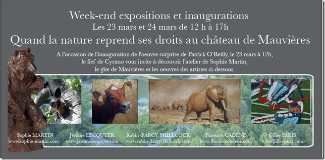 Sophie MARTIN – sculpteur animalier, sera les 23 et 24 mars au château de Mauvières à Saint-Forget les Sablons, ne pas louper !!!