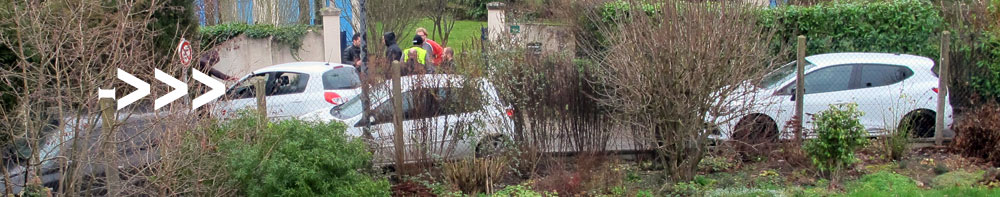 Suite de : « 9 janvier 2014, 10h15, un regard distrait par la fenêtre… je vois bomber droit devant elle une p’tite auto blanche, musique à fond, et hop, elle s’engouffre dans la sente. Encore un aveugle au volant que je me dis. Bon d’accord, pas drôle. Encore un gépéhesse mono tâche alors ? Sans doute.
