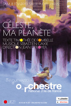• SPECTACLE MUSICAL avec l’Orchestre National d’Ile de France : samedi 8 février, 11h00 / SALLE PLEYEL, Paris. « Céleste ma planète ». Une création musicale de Sébastien Gaxie sur des textes de Timothée de Fombelle (spectacle inscrit au programme CALISTO JUNIOR) Tarif unique : 20€ (transport compris, aller-retour en car SAVAC depuis Saint Rémy lès Chevreuse.