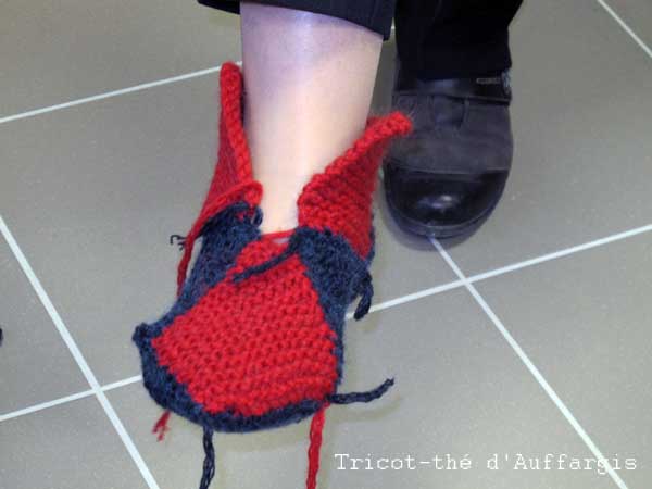 Une fois encore, quel après-midi chouette ! 4 Françoise dont une bordelaise de passage, 1 Aline, 1 Jennifer, 1 Hélène pour de bons moments de partage voire même de franche rigolade au moment du montage tout sauf évident des chaussons au point mousse de Jennifer mais à 7, nous avons vaincu l’obstacle ! Merci à la bib pour son accueil.