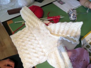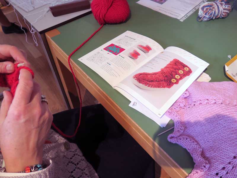 Faisant suite à un très chouette repas pris en commun et achevé sur de délicieuses tartes, excellentes heures passées ensemble à défaire et refaire, les tricots pour certaines, le monde pour d’autres, à lancer des idées pour 2016 et, en cette presque fin d’année, à remercier la bibliothèque pour son accueil permanent.