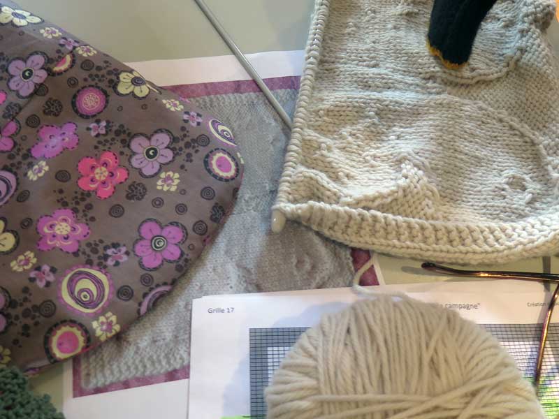 Dernier atelier en attendant la rentrée Mai 25 Hélène Berthou Sans doute du nouveau à la rentrée… A suivre. Bon été à toutes tous ! Torsades de Mme Chouette Mini souris de Françoise D. Sac japonais d’Hélène et nouveau carré de Jocelyne Vêtements de poupée en chaussette, Mme Chouette Une oeuvre de Françoise D.