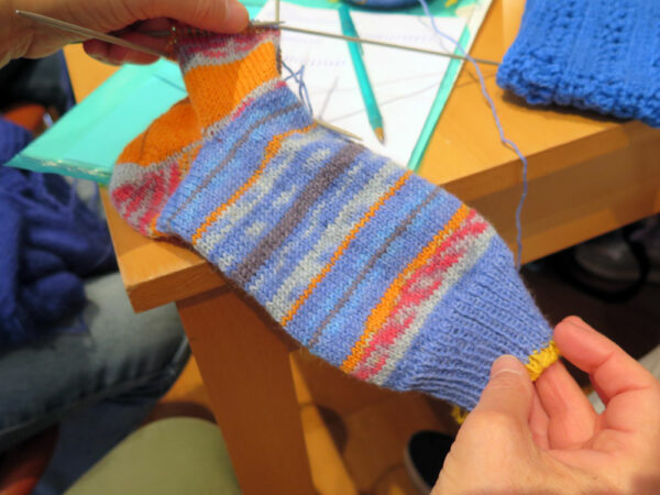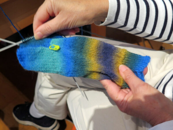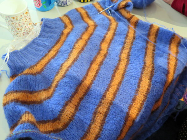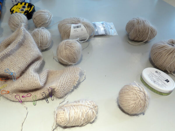 Des navettes à la lavande miam, plein plein de nouveaux projets et en-cours, un pull entièrement détricoté, des questions, des réponses, la visite d’une tricoteuse « expatriée », pas de Marcel en convalescence, mais quand même… un super après-midi.