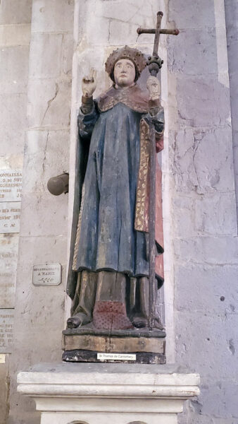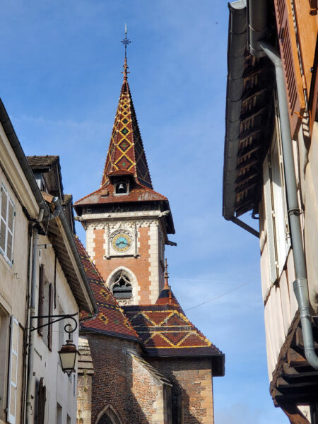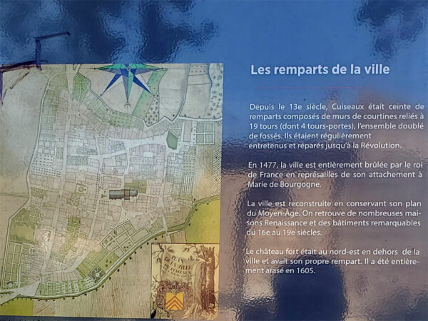 Puis Cuiseaux, une vraie découverte : cité des peintres (Edouard Vuillard et Pierre Puvis de Chavannes), cité médiévale aux remparts solidement campés, palais des Princes d’Orange, ou plutôt maison du bailli, « son représentant pour les affaires de justice et d’administration. Construit à la fin du XVe siècle, l’édifice a été remanié au XVIIe et XIXe. Les façades sont largement transformées lorsque la commune achète le bâtiment pour en faire une école de jeunes filles en 1886. Il est reconverti en centre culturel et social en 1974. » L’église dédiée à Thomas Beckett, Saint-Thomas de Cantorbéry depuis sa canonisation en 1173, est devenue collégiale en 1426. (Archevêque de Cantorbéry, Thomas Beckett (1117-1170) engagea un conflit avec le roi Henri II d’Angleterre sur les droits et privilèges de l’Eglise et fut assassiné par les partisans du roi au sein même de sa cathédrale.)