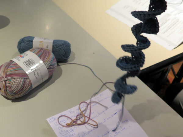 Lundi 3 novembre, reprise après les vacances et ça fait du bien de retrouver le groupe, l’ambiance, merci à toutes ! Et super la chouette visite de notre amie Bri Canta du sud. A nouveau PLEIN de nouveautés, des envies, des projets, des choses à défaire, des tortillons à gogo, de la miam pâte de coings (merci Yasmine) et un p’tit thé pour ponctuer l’après-midi.