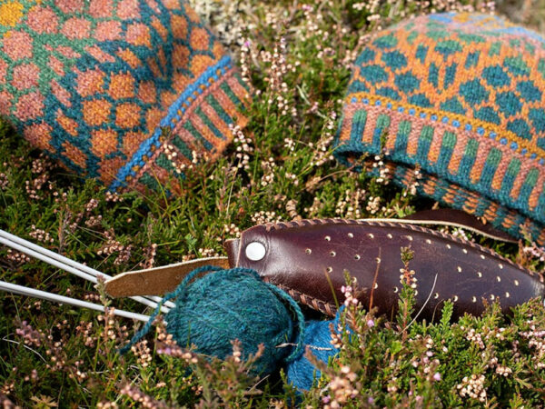 Dans la série, « connaissance du tricot », après la-tradition-des-knitting-sheaths/ voici la ceinture à tricoter telle que vendue sur ce site, merci pour les explications : « La ceinture à tricoter était un outil indispensable pour des générations de tricoteuses qui consacraient leur vie à la confection de vêtements à la main pour leurs familles. Les troubles musculo-squelettiques et les blessures liées au travail répétitif étaient alors inconnus : la ceinture à tricoter permettait aux mains de rester libres de leurs mouvements et d’éviter toute tension corporelle. La position des aiguilles garantissait une posture toujours droite et permettait même de marcher en tricotant, si l’envie vous en prenait. »Si nécessaire, le tricot était enroulé et sécurisé à une ceinture ou mis dans une poche. La ceinture de la tricoteuse était souvent équipé d’un genre de bourse en cuir trouée où une aiguille pouvait se ficher. Cela libérait ainsi la main droite et améliore ainsi grandement la vitesse du tricot.